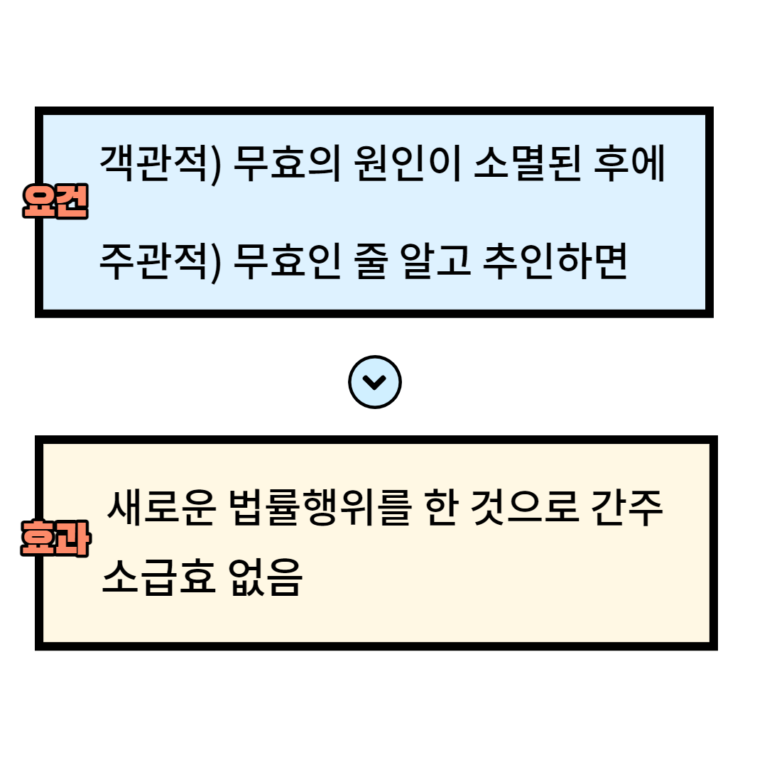 - 새로운 의사표시에 의하여 새로운 법률행위를 하는 것 →그때부터 유효하고 소급효는 없음