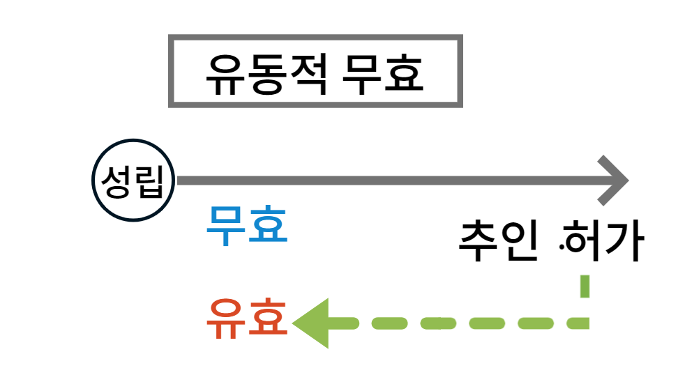→ 새로운 계약을 체결하거나 허가를 받을 필요 없이 확정적 유효가 된다.